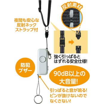 【仕様】単4電池×2本(別売)/反射ネックストラップ付/材質 :ABS/寸法(mm): 約90×35×25/音量(dB)90以上